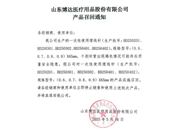 山東博達醫(yī)療用品股份有限公司是生產(chǎn)可吸收性外科縫線專業(yè)廠家,主要產(chǎn)品有可吸收縫合線 、內(nèi)窺鏡圈套線、穴位埋線、快吸收美容線、醫(yī)用羊腸線 膠原蛋白線以先進的生物技術提取了健康哺乳動物內(nèi)臟的膠原蛋白為基材,采用先進的工藝加工而成,線體的主要成分為高純度膠原蛋白,并獲得了國家發(fā)明專利,頒布了YZB/國6301-2013《可吸收性外科縫線》產(chǎn)品標準,并通過了ISO9001:2015和ISO13485:2016質(zhì)量管理體系認證。